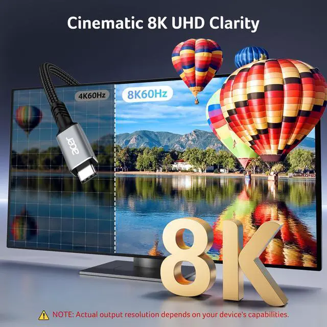 Stunning 8K Display: Use this thunderbolt 3 cable to enjoy Ultra HD resolutions up to 8K@60Hz, including 4K@60Hz, 4K@30Hz, 2K@165Hz, OHD, and Full HD. No matter what device you're using, this Thunderbolt 4 cable delivers unparalleled clarity and detail, supporting mirrored, extended, or cascaded display modes. - .