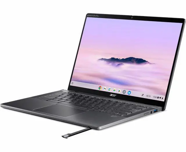 Lift. Flip. Spin. Plus More PowerPowered by the latest Intel Core Ultra 7 Processor the Acer Chromebook Plus Spin 714 is the embodiment of power and portability. A premium thin and light 2-in-1 convertible Chromebook for on-the-go study, work, or play. Your Style, Your WayCarry your work around in style with thin and light 2-in-1 convertible Chromebook made with durable aluminum chassis with a touch of luxury in gold. Precision with every strokeDraw with precision using the tile and pressure sensitive Active Stylus. Store and charge your stylus in the stylus garage without worrying about losing it.