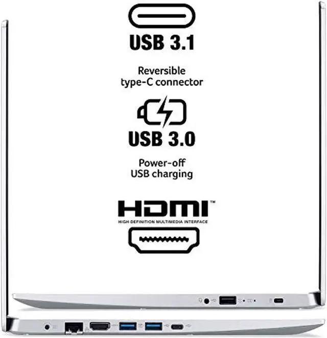 • 1 - USB 3.1 (Type-C) Gen 1 port (up to 5 Gbps), 2 - USB 3.1 Gen 1 Port (one with Power-off Charging), 1 - USB 2.0 Port and 1 - HDMI Port with HDCP Support | Windows 10 Home