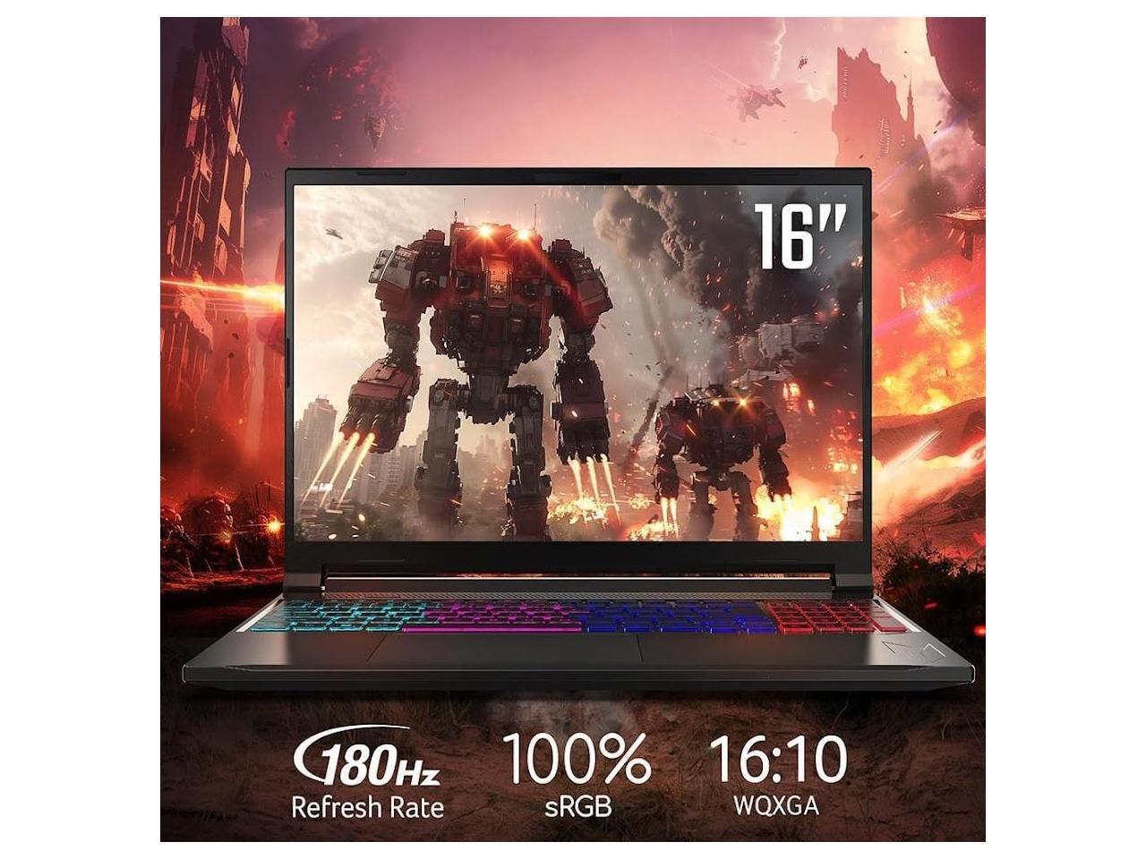 - [Display]: 16" WUXGA 1920 x 1200 display, featuring 100% sRGB, 180Hz refresh rate, enjoy ultra-smooth, even during fast-paced action.