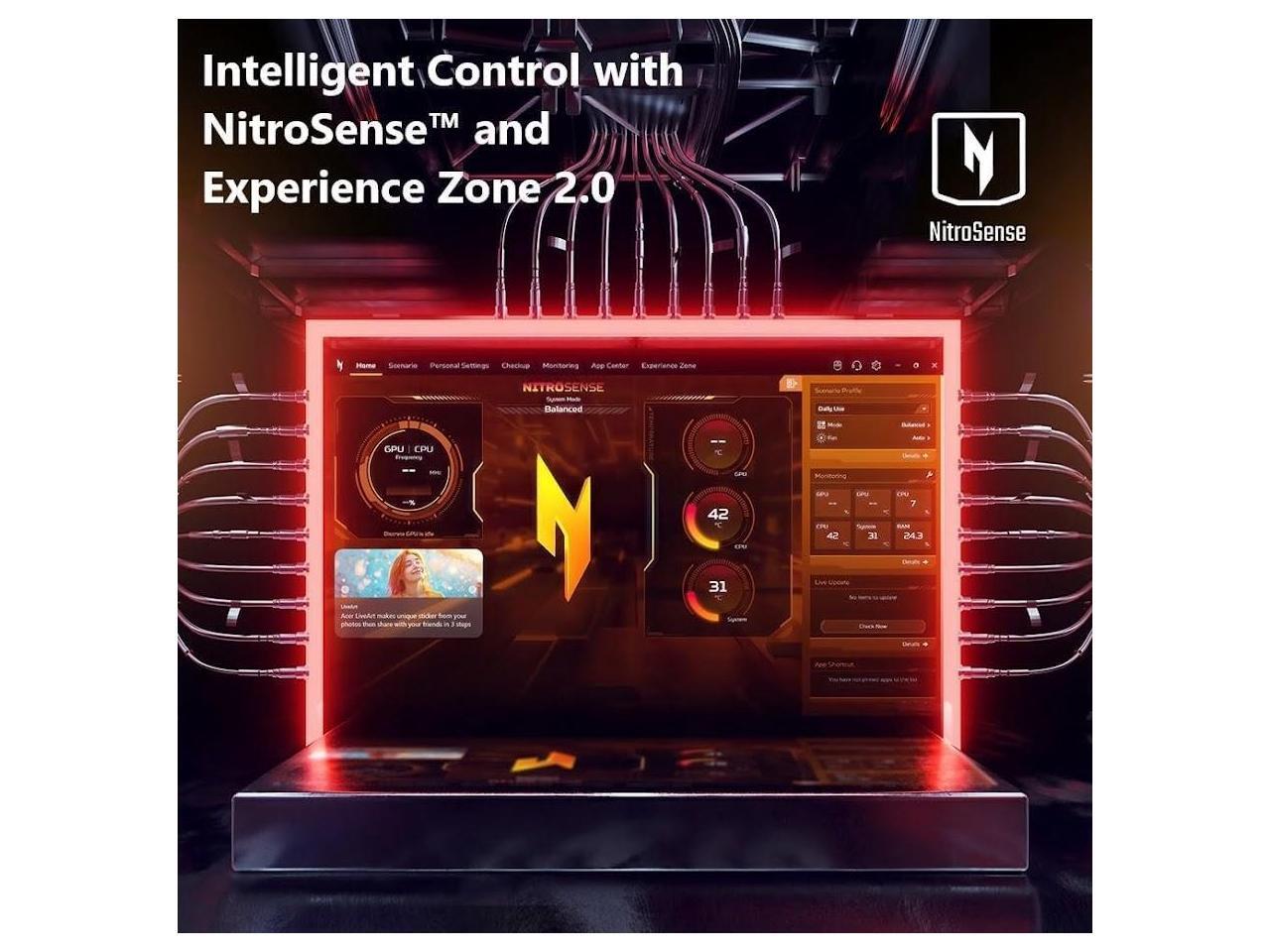 - [Features]: Acer Nitro V 16 AI gaming laptop, equipped with AMD Ryzen 7 260 Processor, Overall TOPS: Up to 38 TOPS, NVIDIA GeForce RTX 5050 Graphics Laptop GPU (440 AI TOPS, MGP 95W) for gaming and AI-driven tasks, along with 4K HDR streaming, making it the perfect choice. | Powered by AI: DLSS is a revolutionary suite of neural rendering technologies that uses AI to boost FPS. | Advanced Dual-Fan Cooling System | RGB Backlit KB | Intelligent Control with Nitro Sense and Experience Zone 2.0.