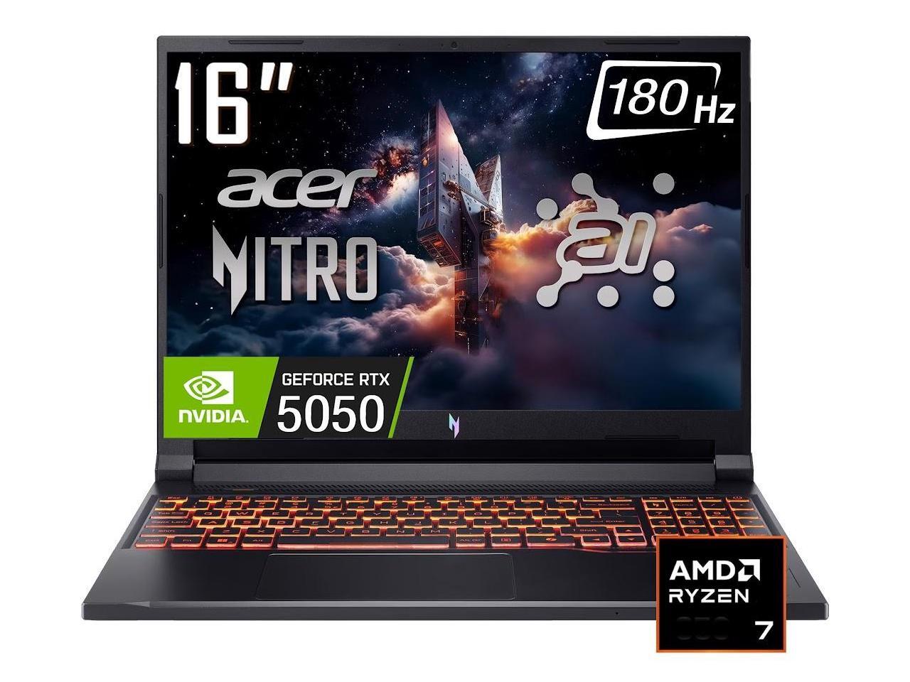 Acer Nitro V AI Gaming Laptop, 16 WUXGA 180Hz IPS Display, AMD Ryzen 7 260 (>Intel i7-14700), NVIDIA GeForce RTX 5050 8GB GDDR7, 64GB DDR5 / 2TB SSD, RGB Backlit KB, Wi-Fi 6E, Win11 Home