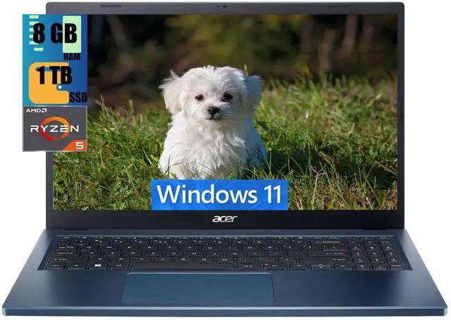 Acer Aspire 3 15 Laptop, 15.6" FHD (1920 x 1080) Touchscreen, AMD Ryzen 5 7520U 4 Cores Processor, AMD Radeon Graphics, 8GB DDR4 1TB PCIe SSD, Wi-Fi 6, Windows 11 Home