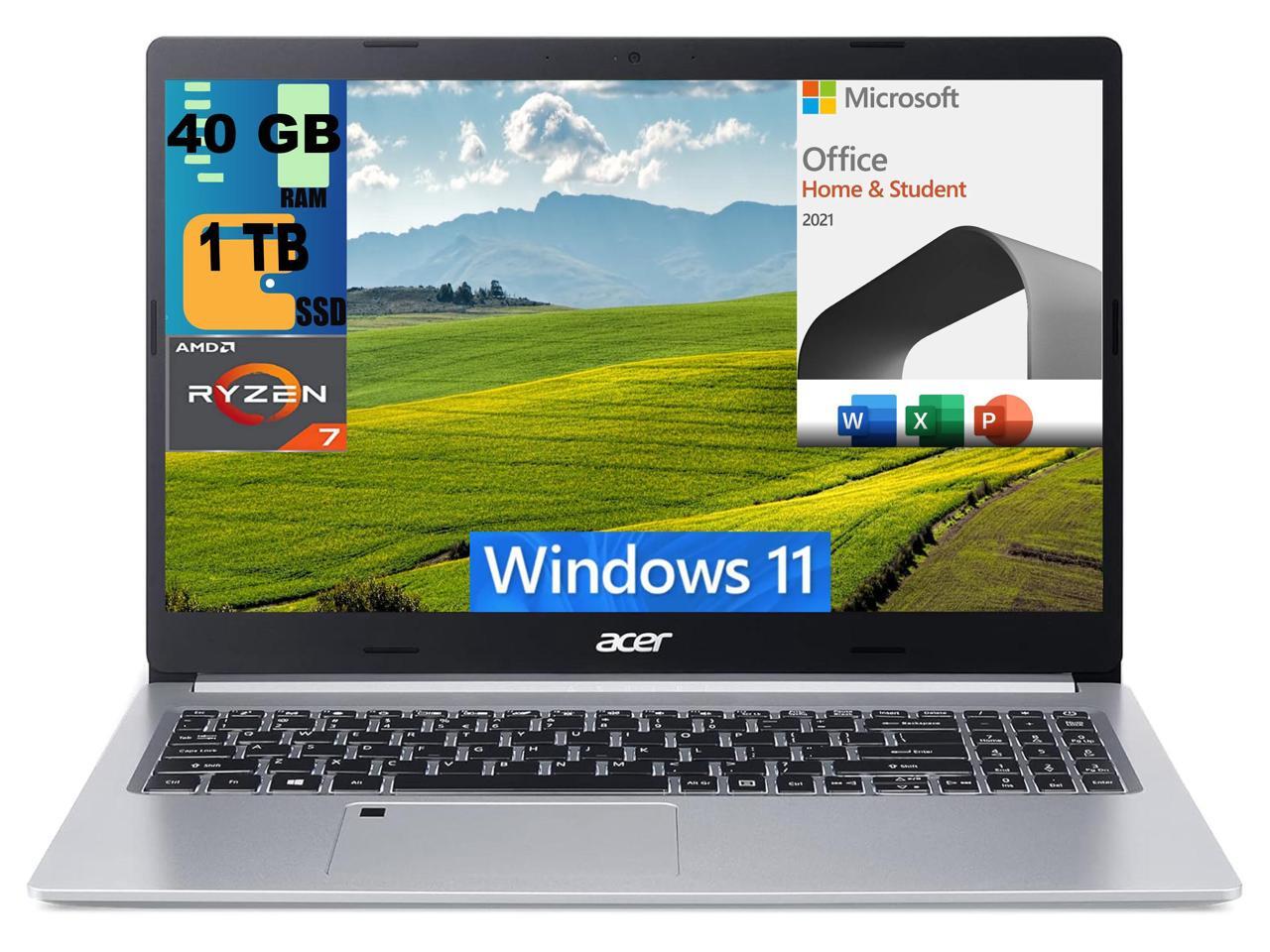 Acer Aspire 5 15 Slim Laptop, 15.6" FHDDisplay, AMD Ryzen 7 3700U Quad-Core Processor, AMD Radeon Graphics, 40GB DDR4 1TB PCIe SSD, Backlit KB Fingerprint, Windows 11,Microsoft Office License