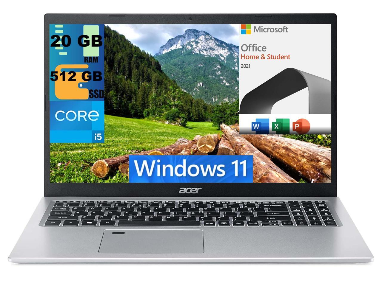 Acer Aspire 5 15 Laptop, 15.6" FHD Display, Intel Core i5-1135G7 4 cores Processor, Iris Xe Graphics, 20GB DDR4 512GB PCIe SSD, Fingerprint Reader, Windows 11,Microsoft Office License