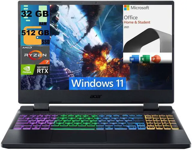 Acer Nitro 5 15 Gaming Laptop, 15.6" QHD 165Hz Display, AMD Ryzen 7 6800H 8 Core processor, RTX 3070 Ti 8GB GDDR6, 32GB DDR5 512GB PCIe SSD, RGB Backlit, Windows 11,Microsoft Office License