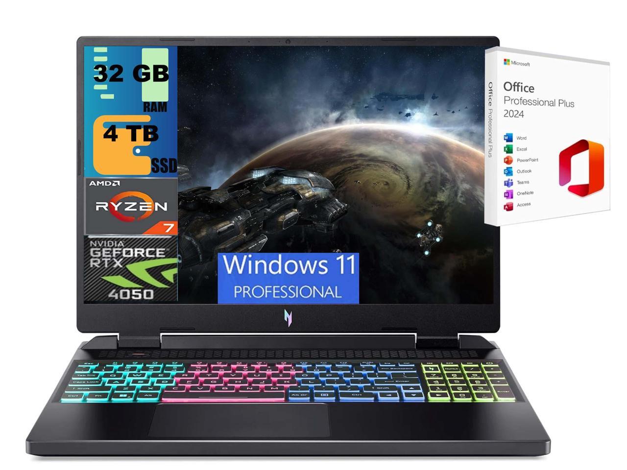 Acer Nitro 16 Gaming Laptop, 16" WUXGA 165Hz, AMD Ryzen 7 7840HS Octa-Core Processor, NVIDIA GeForce RTX 4050 6 GB, 32GB DDR5 4TB PCIe SSD, RGB Backlit KB, Windows 11 Pro ,Office 2024 License