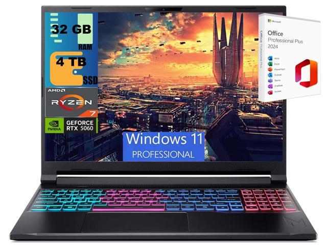 Acer Nitro 16 Gaming Laptop, 16" WUXGA 180Hz Display, AMD Ryzen 7 260 Octa-Core Processor, NVIDIA GeForce RTX 5060 8 GB GDDR7, 32GB DDR5 4TB PCIe SSD, Wi-Fi 6, Windows 11 Pro ,Office 2024 License