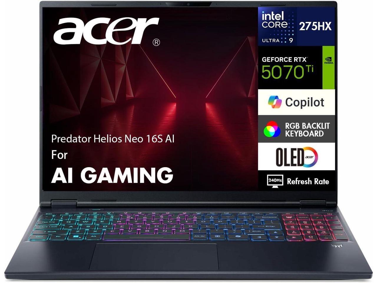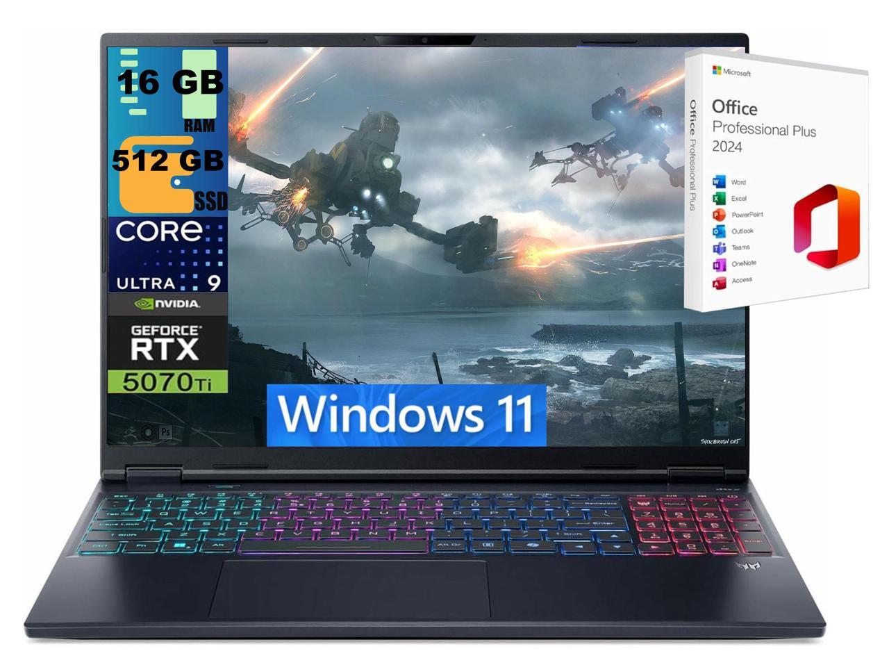 Acer Predator Helios Neo 16 Gaming Laptop, 16" WQXGA 240Hz, Intel Core Ultra 9 275HX 24-Cores Processor, RTX 5070 Ti 12GB GDDR7, 16GB DDR5 512GB PCIe SSD, WiFi 6E, Windows 11 ,Office 2024 License