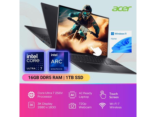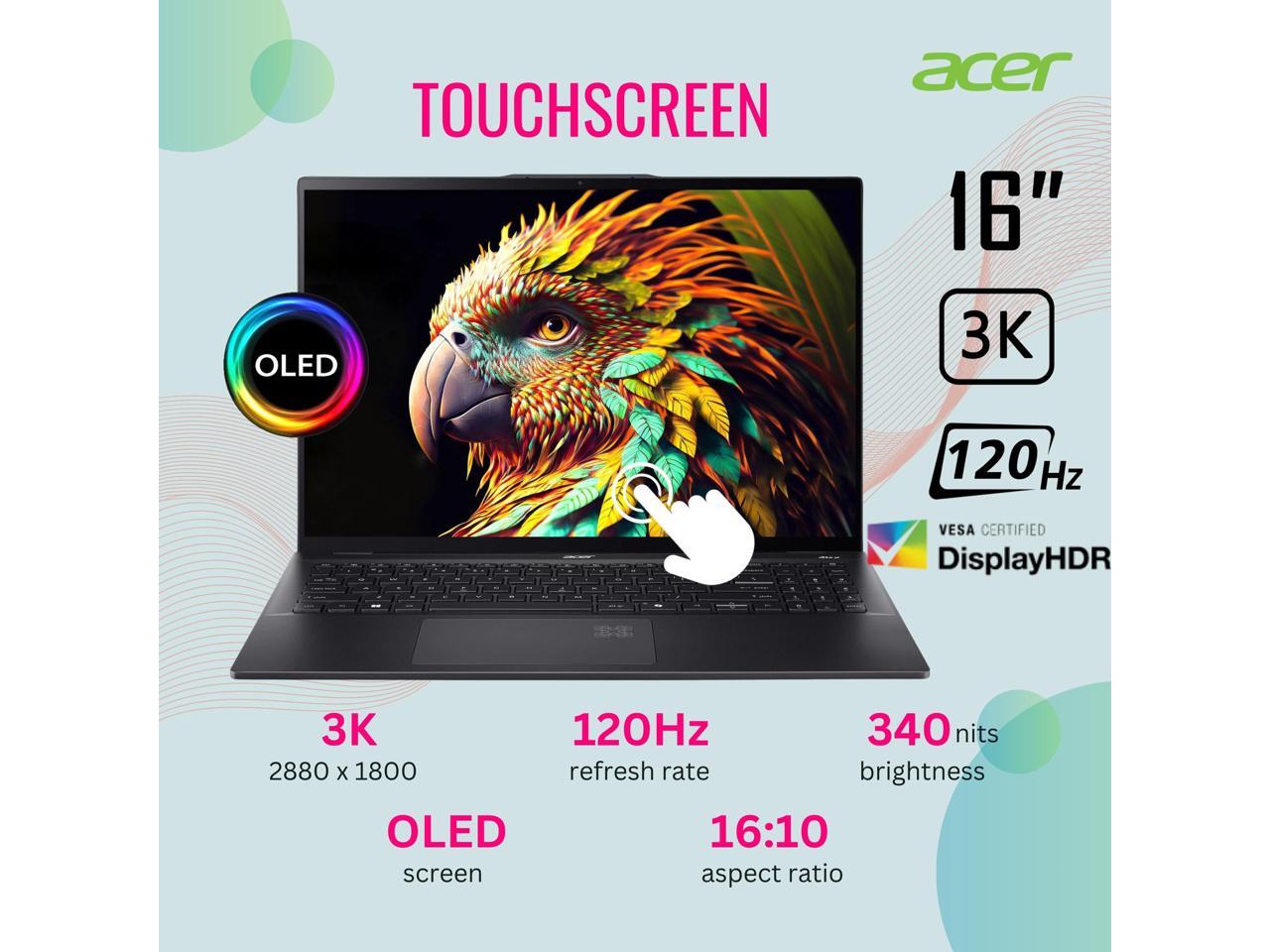 Acer Swift 16 AI Business Laptop, 16" 120Hz 3K OLED Touchscreen, Core Ultra 7 256V(>i9-12900K), Copilot, 1440p QHD IR Webcam, Backlit, Fingerprint, Wi-Fi 7, Win 11 Home, Black(16GB RAM DDR5 | 1TB SSD)