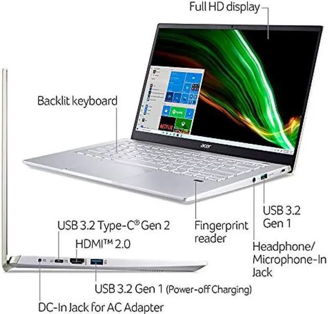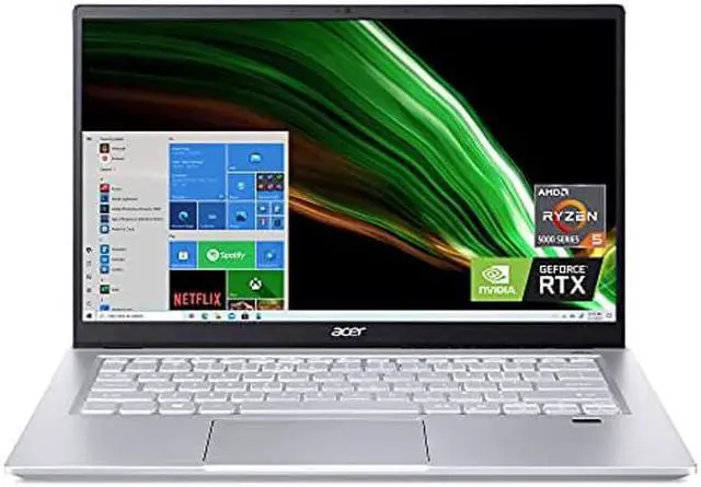 With the latest NVIDIA GeForce RTX 3050 Laptop GPU, you'll experience graphics powered by new RT cores, Tensor cores, and streaming multiprocessors for visuals that look like real life. Start livestreaming or play back your video creations with Acer technologies like PurifiedVoice and TrueHarmony to give you clear audio. Spend the day on the move with long battery life and a sleek, portable chassis. Worried about keeping your ideas safe? The embedded fingerprint reader with Windows Hello Certification makes sure only you can log into your Acer Swift X laptop. (NX.