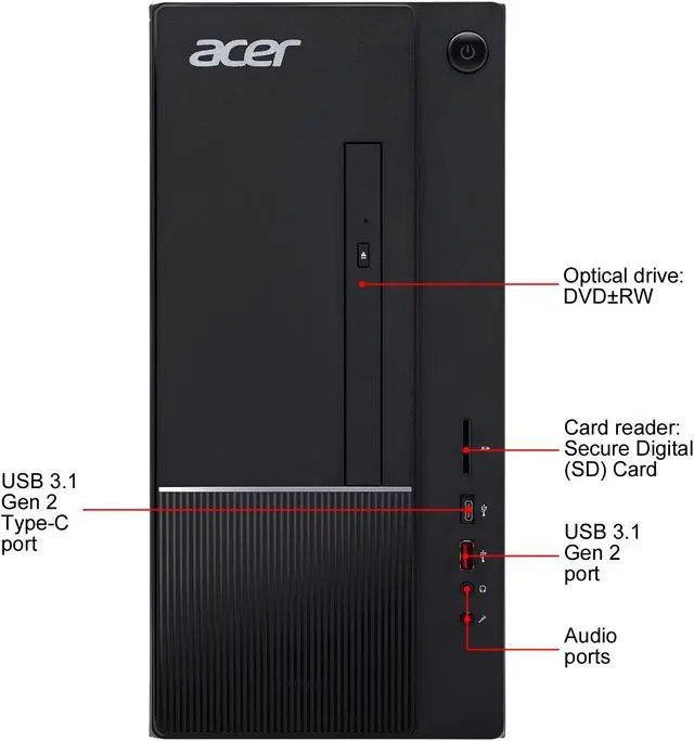 Acer Aspire (TC-865-UR13) - Desktop PC - Intel Core i3-9100 (4-Core, 3.6 GHz), Intel UHD Graphics 630, 8 GB DDR4, 1 TB HDD, Tower, Windows 10 Home