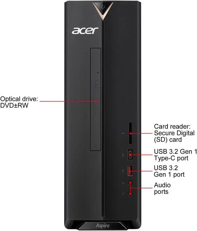 Introducing the new look of Aspire XC series desktop: Easy access arrow-like power key, vertical hairline brush front cover and attractive glossy badge deco. The small size, packs all you need for daily computing with room to grow and fits great either on a desktop or floor.