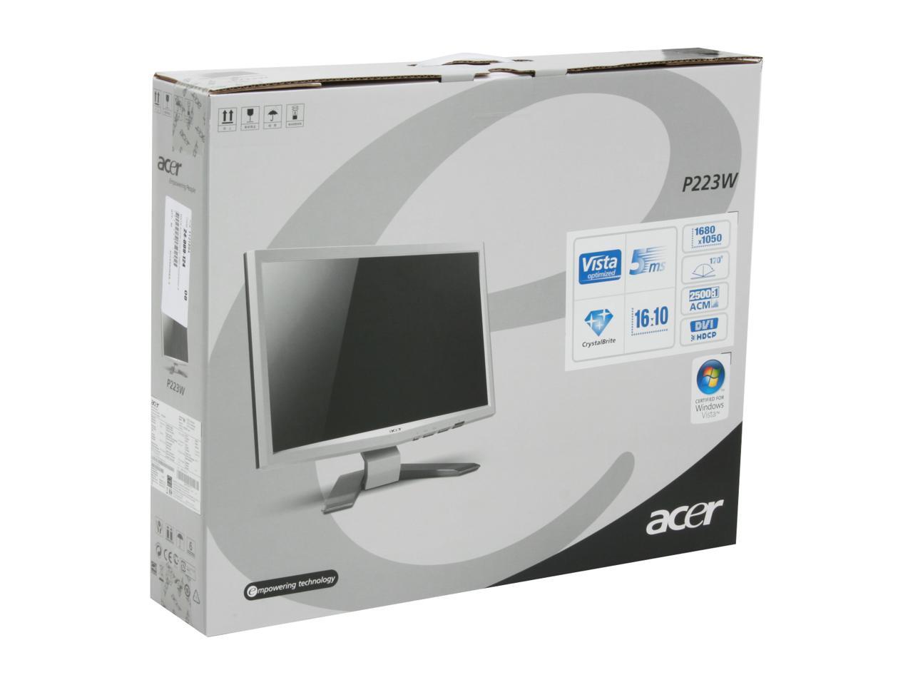 The Acer P223Wwd 22-inch LCD wide-screen display delivers crisp text and vivid colors with a startling contrast ratio, a wide 170° (h) / 160° (v) viewing angle, precise resolution, a lively response time to keep up with intense graphics and fast-moving video. The extra-large workspace lets you view multiple windows at once, without having to stack them and toggle back and forth.