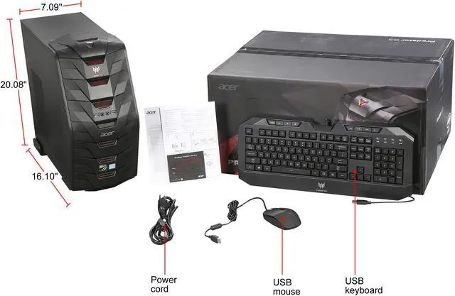 Acer Desktop Computer Predator AG3-710-UR14 Intel Core i7-6700 32GB DDR4 1TB HDD GeForce GTX 1070 Windows 10 Home 64-Bit
