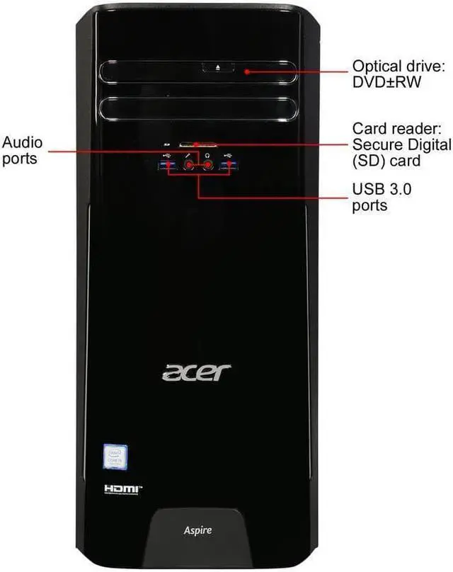 Free your creativity! Even demanding tasks like editing home videos and compiling photo albums are easy with the Aspire T Series' new-generation performance and easy expandability. The elegant black housing offers front-panel media access and topside digital device storage, providing both visual and functional enhancements. Plus, your media is shareable through Acer BYOC™ Apps. A sizable 16 liter chassis provides plenty of extra space for future expansion. The classic cover and uniquely ridged edges ensure you work and play in style. Listen to voices and special effects with increased clarity with HD 5.1 Surround Sound.