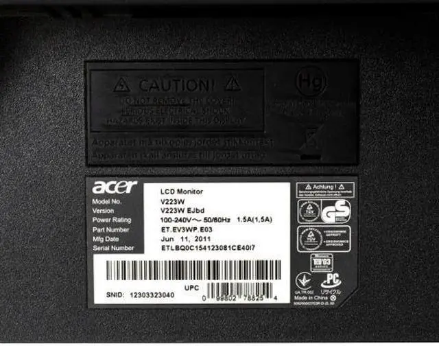 Acer V223W 22 1680x1050 16:10 Widescreen LCD TFT Monitor VGA DVI Grade B. This is an Acer 22 LCD TFT widescreen monitor. The resolution is 1680x1050 with an aspect ratio of 16:10. Our technicians have tested every monitor to guarantee that they are fully functional.
