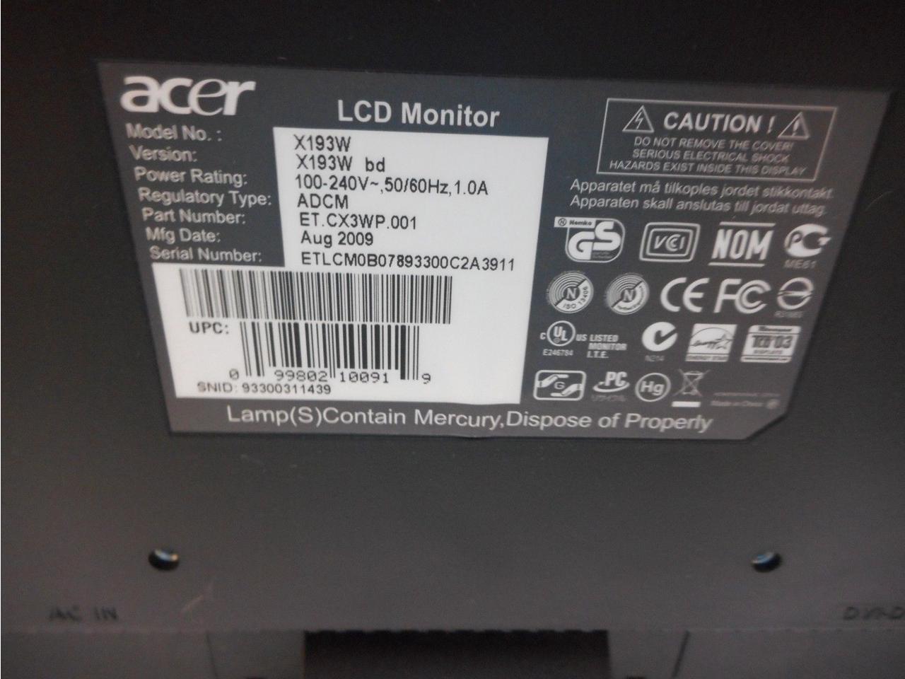 Refurbished ACER X193W 1440 x 900 Resolution 19" WideScreen LCD Flat Panel Computer Monitor Display