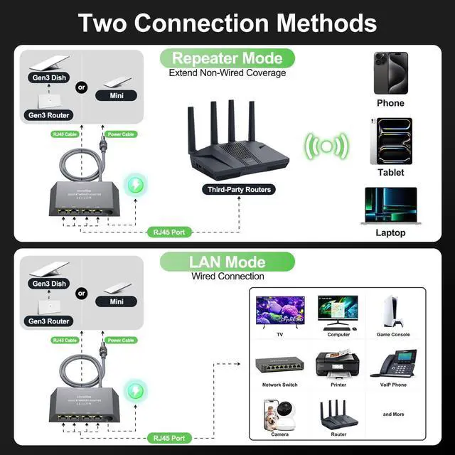 ![Alt view image 6 of 7 - Starlink Ethernet Adapter Mini Gen3,Starlink Gen3/Mini Adapter Wired External Network,linkoostar 4 Ports Starlink to RJ45 Gigabit Ethernet Splitter 1 to 4 [4 Devices Networked Simultaneously]](https://c1.neweggimages.com/productimage/nb640/C3H5D2512300DXXKJ3C.jpg)