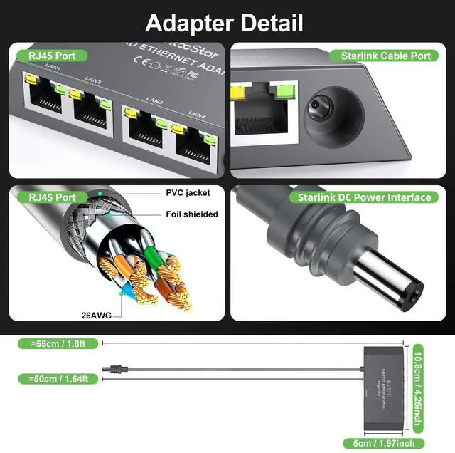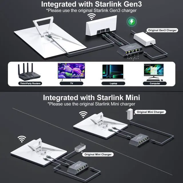 ![Alt view image 5 of 7 - Starlink Ethernet Adapter Mini Gen3,Starlink Gen3/Mini Adapter Wired External Network,linkoostar 4 Ports Starlink to RJ45 Gigabit Ethernet Splitter 1 to 4 [4 Devices Networked Simultaneously]](https://c1.neweggimages.com/productimage/nb640/C3H5D2512300DXXKY36.jpg)
