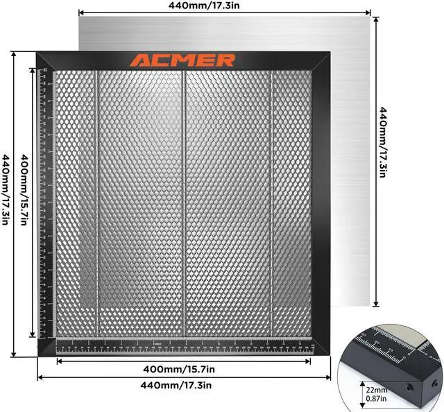 Enhance your laser engraving and cutting experience with the Honeycomb Laser Bed from ACME. This honeycomb workbench is designed to provide quick heat dissipation, ensuring optimal performance during laser engraving or cutting tasks. The honeycomb structure allows for efficient cooling, while the built-in aluminum plate offers a strong and durable surface for your laser machine. Not only does it protect your desktop from accidental damage, but it also improves the overall efficiency of your laser cutting and engraving projects. The ACME Honeycomb Laser Bed is compatible with a wide range of laser engraving and cutting machines, making it suitable for various applications.
