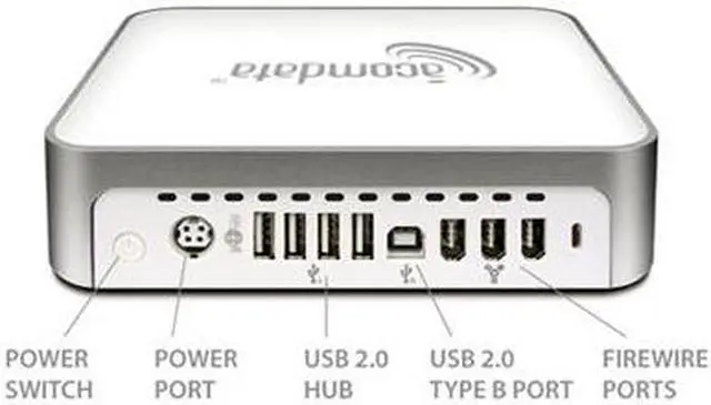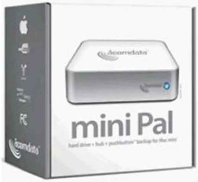 Well, now there's mini Pal, the perfect companion to your Mac mini from AcomData. Mini Pal provides your Mac mini with more storage capacity, more device connections, and more data protection with PushButton Backup.
