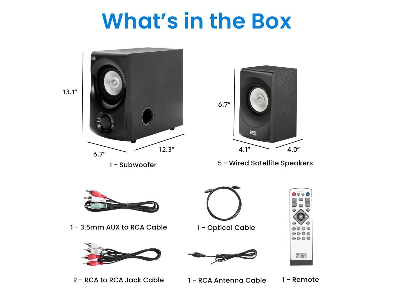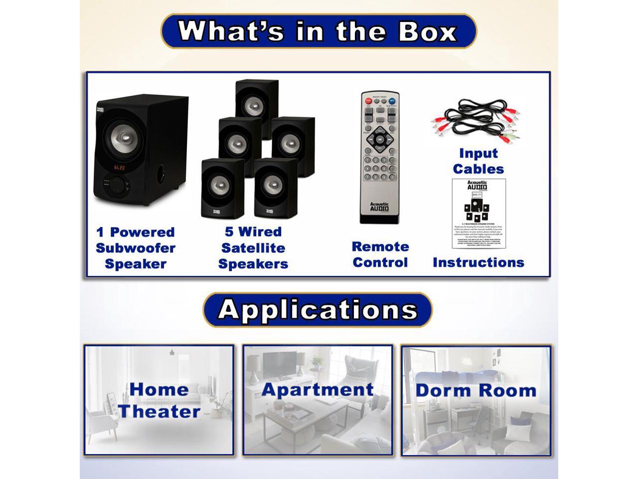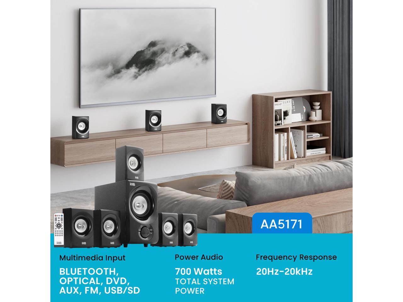 Acoustic Audio by Goldwood AA5171 5.1 Surround Sound Bluetooth Home Entertainment System (6 Speakers, 5.1 Channels, Black with Silver)