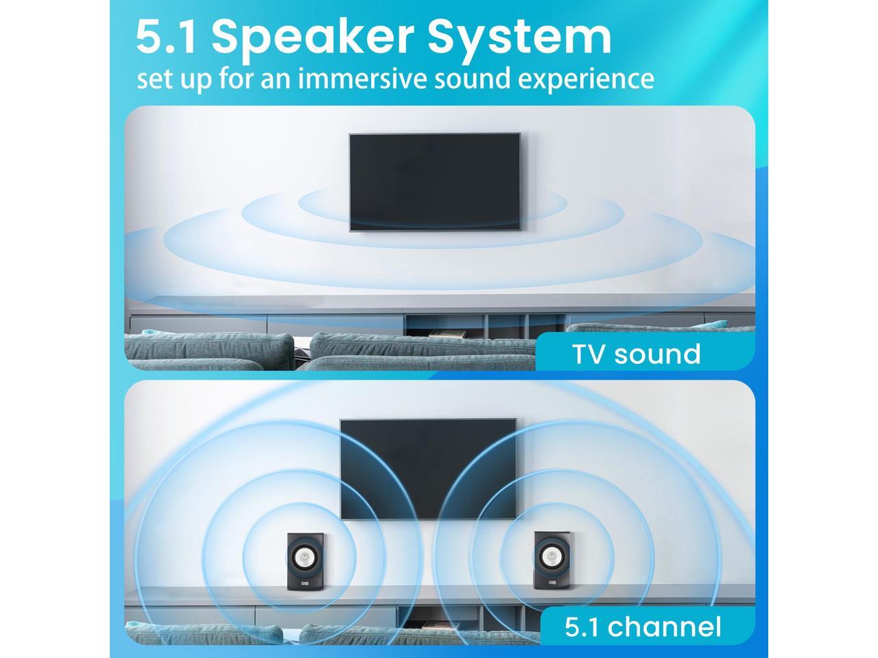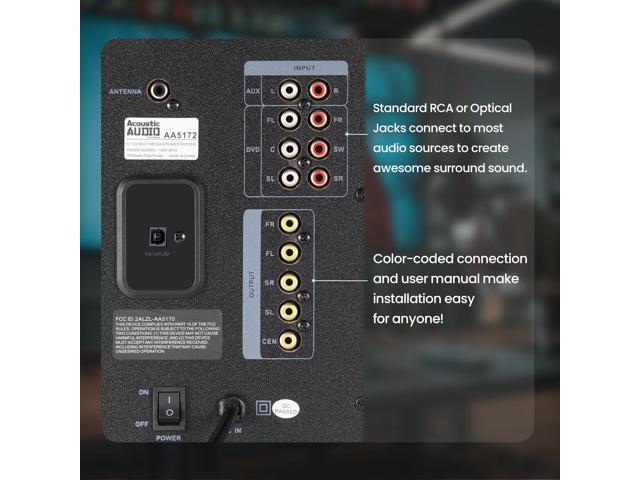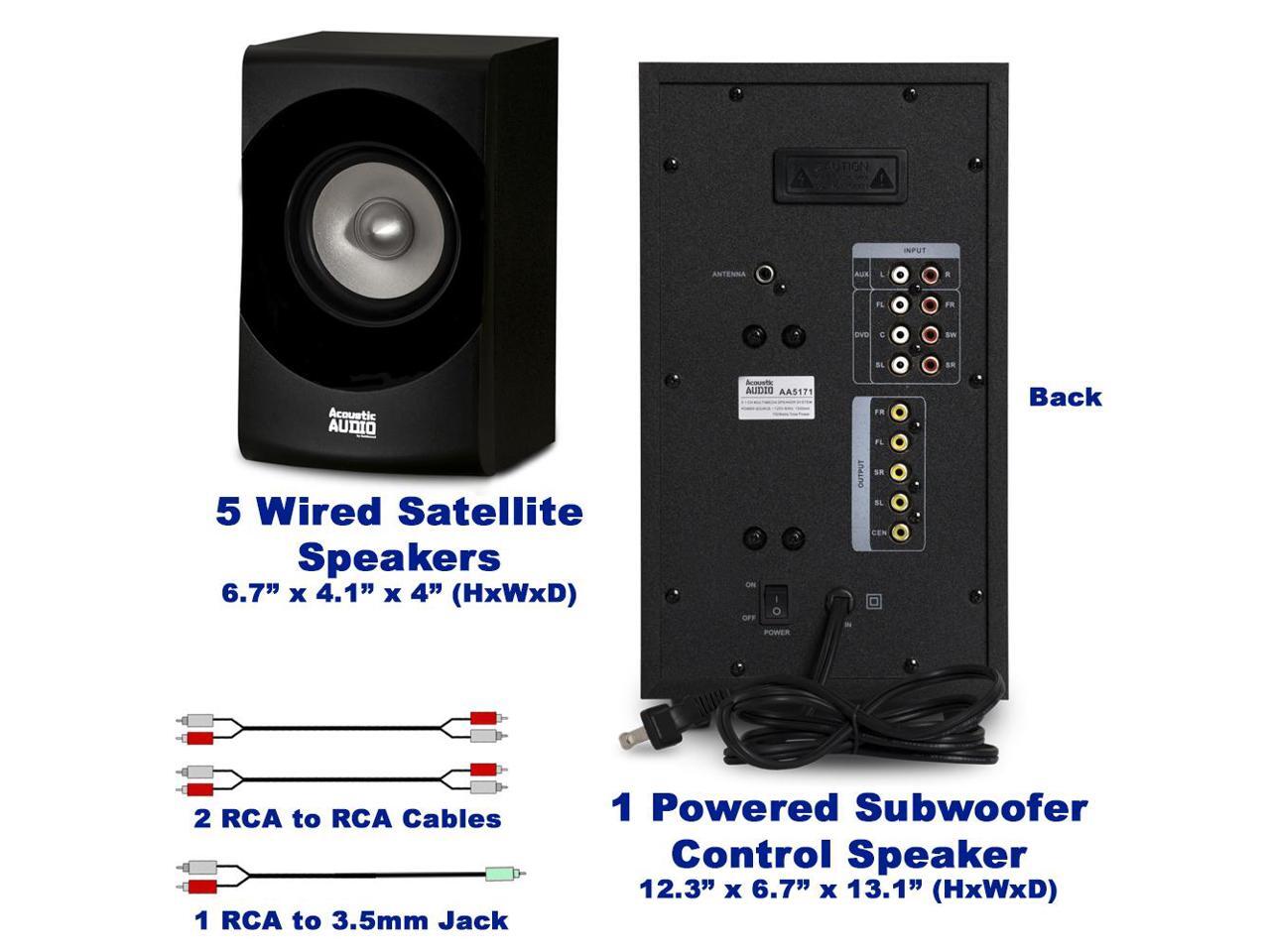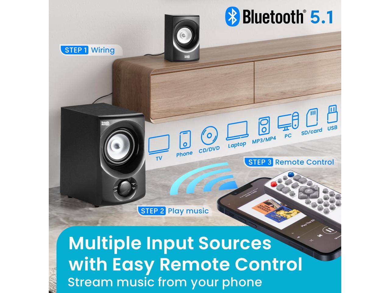 Acoustic Audio by Goldwood AA5171 5.1 Surround Sound Bluetooth Home Entertainment System (6 Speakers, 5.1 Channels, Black with Silver)
