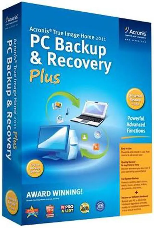 | Feature | Includes Acronis True Image Home 2011 and Plus Pack. Plus Pack is an add-on module for True Image Home 2011 which features enhacements for advanced home users, including the flexibility to restore files, applications, and an operating system to dissimilar hardware. The solution also provides support for Dynamic Disks and Microsoft Windows Preinstallation Environments (WinPE). Acronis True Image Home 2011 assures that all your important data, including photos, videos, music, documents, and applications, are fully protected and can be recovered quickly in the event of any disaster. Use our intuitive graphical user interface to easily define where you'll be backing up your PC and how often. Create copies of your hard drive with just a few quick steps while continuing to work. If you lose an important file or need to recover an earlier version of it, don't worry: you can go back in time and retrieve it in seconds. |