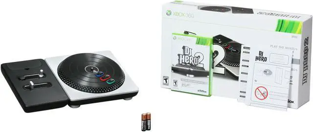 Two Turntables & MicrophoneUp to 2 DJs can mix, scratch, and sample on the acclaimed DJ Hero turntable controller, while a vocalist grabs a microphone and sings or raps along with on-screen lyrics.