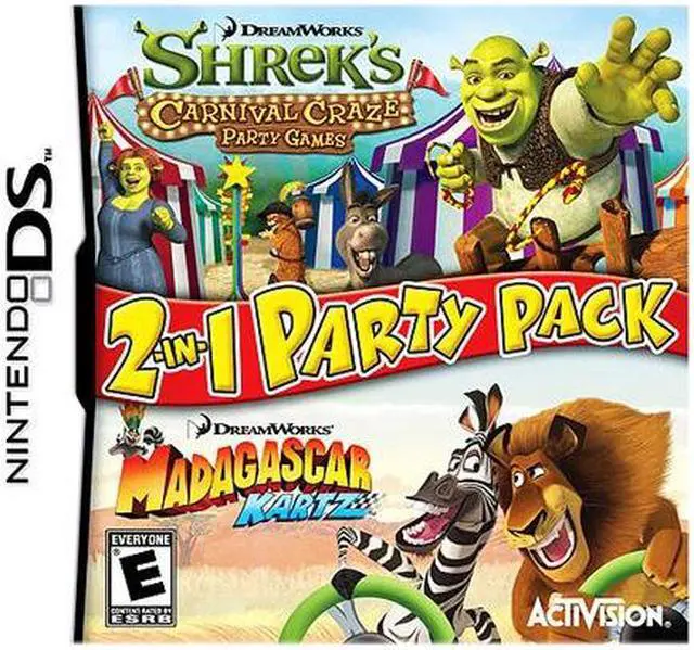 | Features | Includes full versions of kart-racing favorite Madagascar Kartz and party-game perennial Shrek Carnival Craze. Play as all of your favorite Shrek and Madagascar Characters: Shrek, Fiona, Donkey, Puss In Boots, the ogre babies, Gingy + Alex, Gloria, Marty, Melman, King Julien and the crafty penguins. |