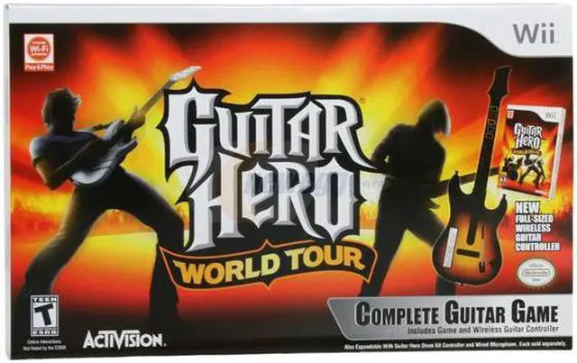 Guitar Hero World Tour invites you to put down your guitar – and pick up a pair of drum sticks or a microphone and rock out! World Tour adds the use of percussion and vocals to the rhythmic play.