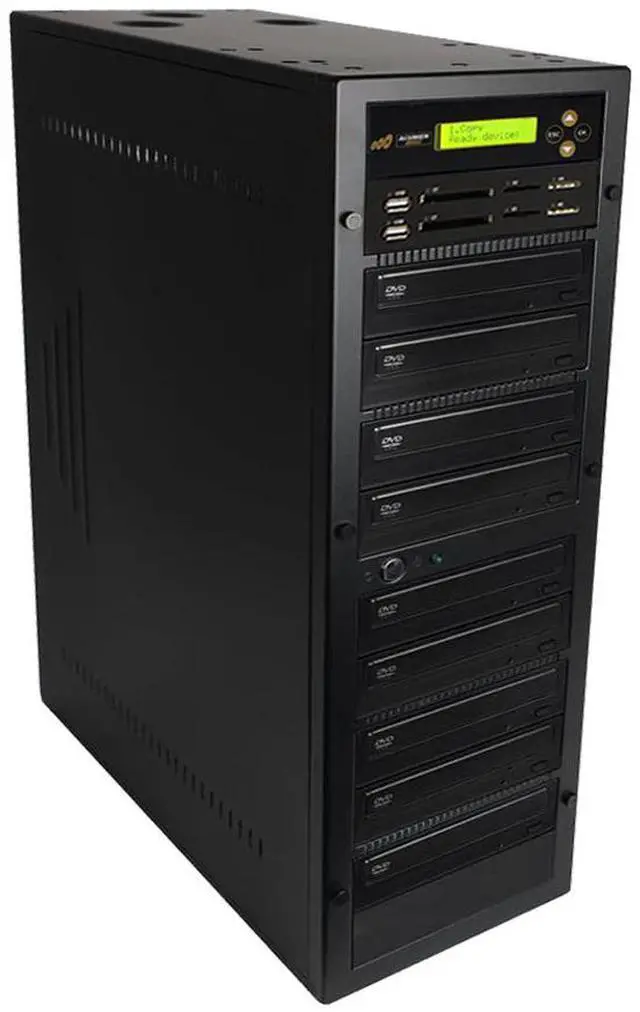 Besides being a disc to disc duplicator, you can use this complete system as an single target media duplicator to copy one USB, CF, SD or MS to the same or other type of media in the lower slot. There are 4 reader on the media deck that can be copy to the lower slot for this one to one copy media duplication (CompactFlash, Secure Digital, Memory Stick or USB at one at a time single target copy).