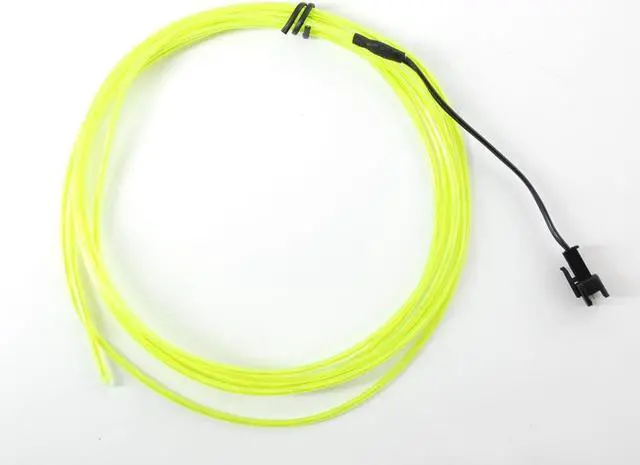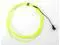 EL Wire, also known as Electroluminescent wire is a stiff wire core coated with phosphor and then covered with a protective PVC sheath. When an AC signal is applied to it, it glows an aqua (blue green) color. You can make it look different colors by changing the coating, for example this is a vivid lime green. It looks a little like thin neon. Very bendable, it keeps its shape and you can curl it around your finger. Its an easy way to add some glow to a project, not as bright as LEDs but uses a lot less power! We've got 2.6 mm thickness EL wire, with a lime green coat, pre-cut and soldered to a standard quick-connect EL wire.