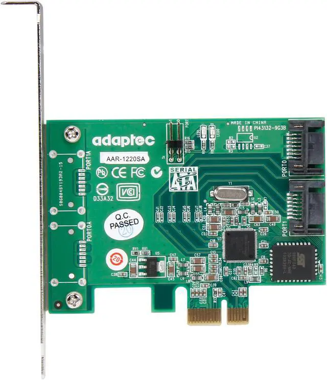 The Adaptec RAID 1220SA card is a two-port, PCI Express x1 controller featuring Adaptec HostRAID - an integrated RAID technology that maximizes system performance and uptime. The Adaptec 1220SA supports up to two 3Gb/s Serial ATA drives, Native Command Queuing, and offers RAID levels 0, 1, and JBOD (individual drive). The Adaptec 48-bit logical block addressing (LBA) support enables use of disk drives exceeding 137 GB in capacity. The Adaptec 1220SA supports Windows 2000, Windows Server 2003, Windows XP, RedHat Linux, SuSE Linux, and NetWare.