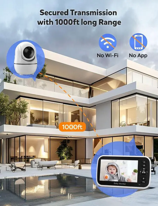 The long range of 1000ft make it possible for you to keep an eye & ear on your baby. whether you are in the bedroom, dinning room or even the garden.
