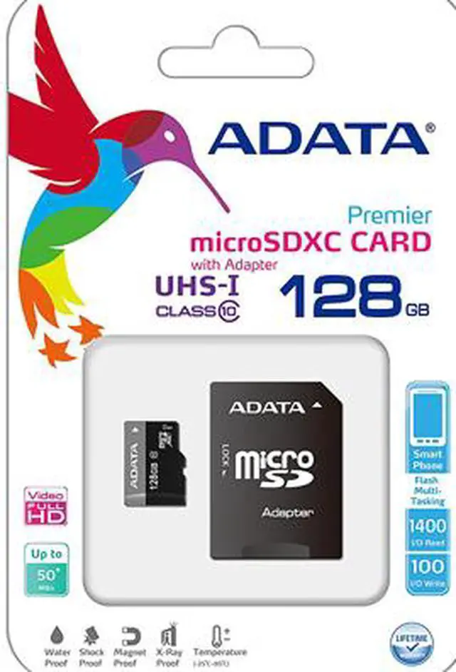 | Features | Supports latest SD 3.0 and UHS50 standards Offers up to 1400/100 IOPS random Read/Write speed to ensure high performance while running multiple applications Read/Write speed up to 30/10 (MB/s) NOTE: Read/write speed based on ADATA internal testing; performance may be lower depending on host device Compatibility: Windows 98/98SE/ME/2000/XP/Vista/7/8 Mac OS 9.0 or Later Linux Kernel 2.4 or Later |