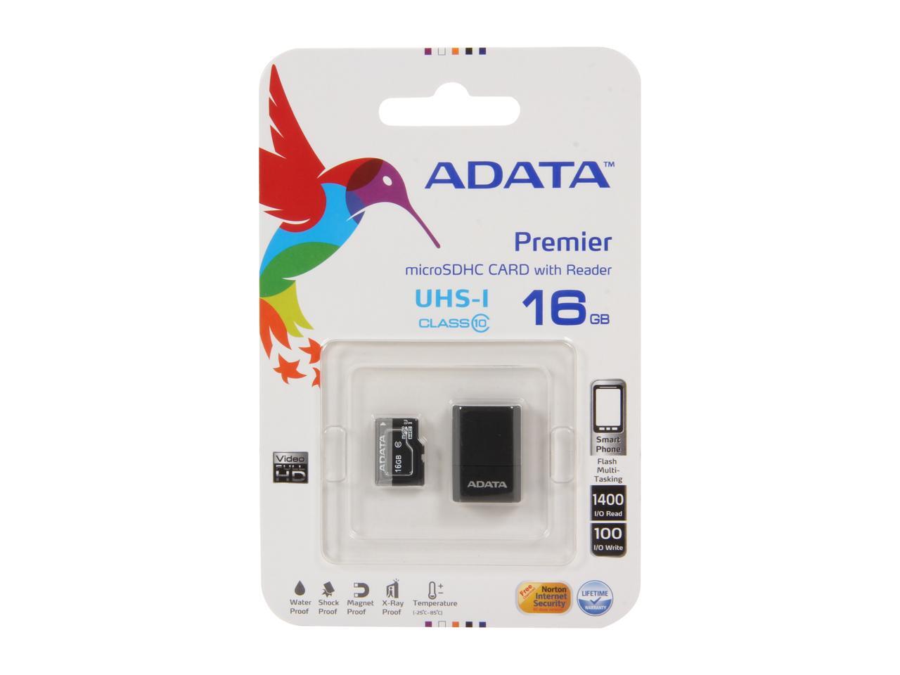 ADATA Premier 16GB microSDHC UHS-I CLASS 10 with V3 USB Reader (Black/Blue)
