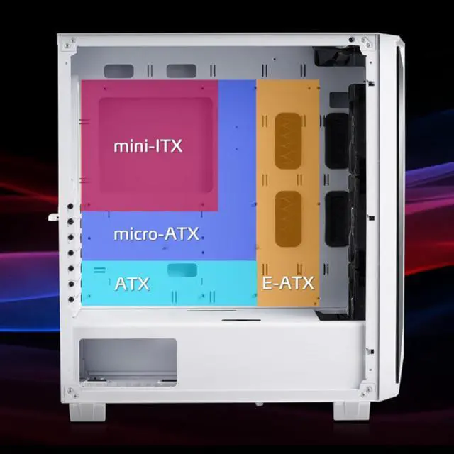 Spacious design and cable management for easy and clean build Efficient Airflow layout with 3 pre-installed XPG fans Supports various M/B sizes: Mini-ITX, Micro-ATX, ATX, EEB, CEB, E-ATX Top magnetic dust filter for easy cleaning Bigger interior space, supports GPU up to 350mm (without a front radiator)