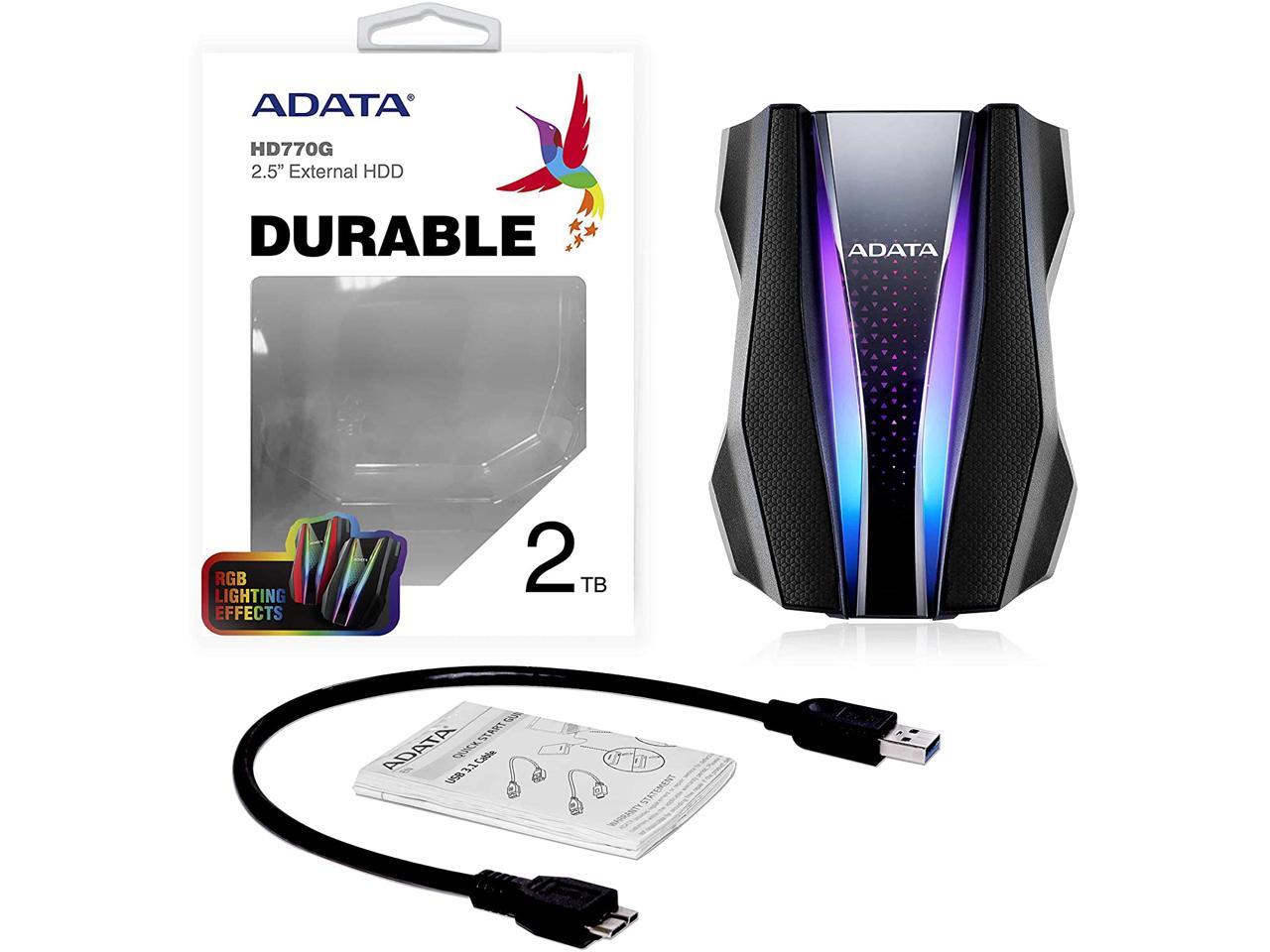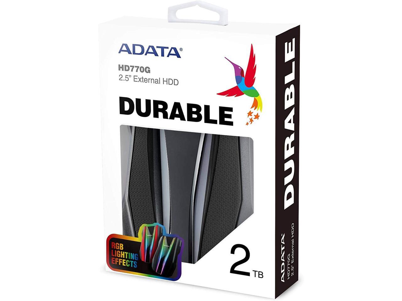ADATA 2TB HD770G RGB IP68 USB 3.2 Portable External Hard Drive Black - AHD770G-2TU32G1-CBK
