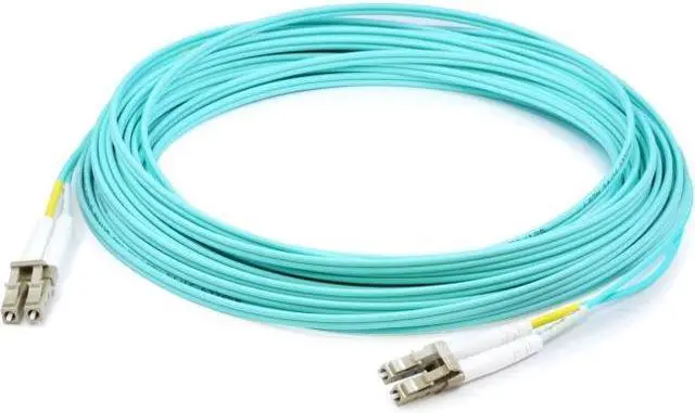 This is a 13m LC (male) to LC (male) aqua duplex riser-rated fiber patch cable. An OM3 cable has a core size of 50 microns that supports 10 Gigabit Ethernet at lengths measuring up to 300 meters, and 40 Gigabit or 100 Gigabit Ethernet measuring up to 100 meters. This optical fiber, nonconductive, riser (OFNR) cable is best suited for use in interior fiber-optic applications. A duplex cable is a two-strand fiber optic patch cable that works best with transceivers that both transmit and receive. Our patch cables are 100% compliant for all of your networking needs. Our products are guaranteed by federal law to not affect or void OEM warranties.