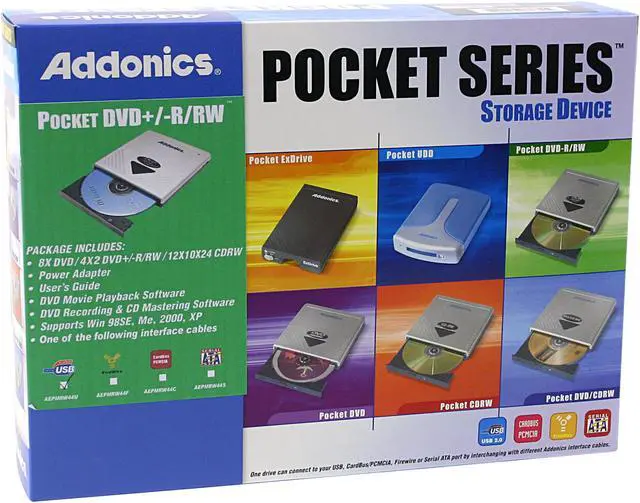 The Pocket DVD+/-R/RW is one of the smallest portable super combo drives that combines all the functions of a DVD Player, DVD Recorder, CD Player and CD Recorder into a size equivalent to a double stack CD jewel case. You can use this device for achieving data to high capacity DVD-R, DVD+R, DVD-RW, DVD+RW media, or recording onto the ubiquitous CD-R or CD-RW media, DVD, CDRW duplication, or view DVD movie