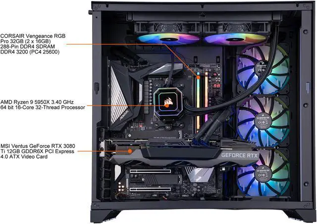 Get the ultimate performance in gaming with the ADENINE Alpha Gaming PC. Powered by AMD Ryzen 9 5000 series 16 Core processor and GeForce RTX 3080 Ti GPU based graphics card, this PC brings your gaming experience to a new level, while the tempered glass side panel shows your build’s internals in the RGB-illuminated compact mid-tower case.