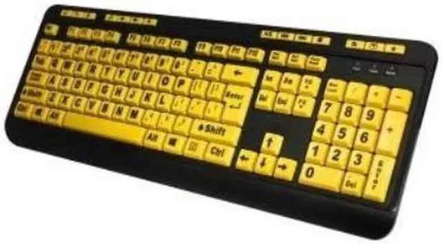?? Adesso? AKB-132UY Florescent Yellow Multimedia Desktop Keyboard is designed for those whose eyesight isn t quite what it used to be, or for anyone with a slight visual impairment. With its large 4X black print on bright yellow keys, you can type out anything from a simple Email to finishing your next novel with greater ease and less strain on your eyes. The membrane key switches provide a quiet and quick response and stand up to heavy use-- up to 5 million keystrokes! Not only is the Adesso? AKB-132UY keyboard great for anyone with slight visual impairments, but its large, bright florescent keys make it a great and even fun tool for kids to use too!