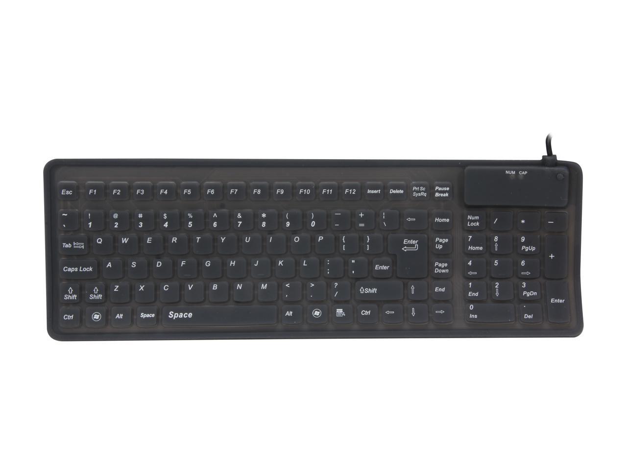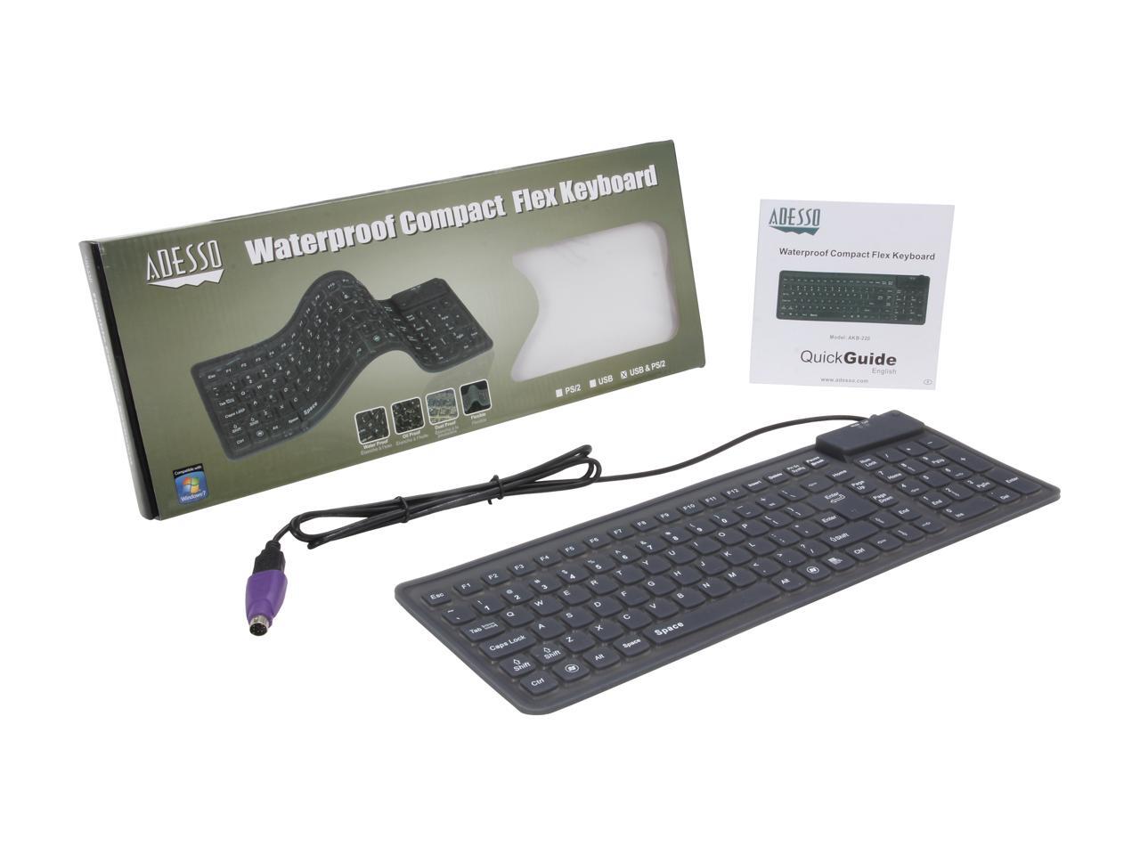 ADESSO AKB-220 Black 105 Normal Keys USB or PS/2 Wired Slim Flexible Compact Waterproof Keyboard