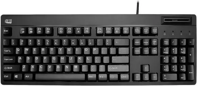 Smart Chip kyb features a 104-key keyboard layout with a built-in Smart Card Reader (SCR) for banking transactions, identification systems, secure web applications, and secure login. Perfect for security and multi-functional abilities. Full-sized keyboard with 2X key caps and membrane keys, built-in multi-functional hotkeys allow quick access to your multimedia controls and Internet browser commands.