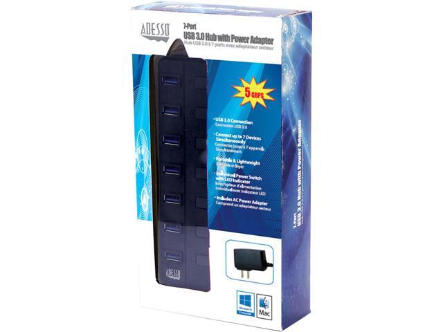 Adesso AUH-3070P 7-Port USB 3.0 Hub with Individual Power Switch & Power Adapter