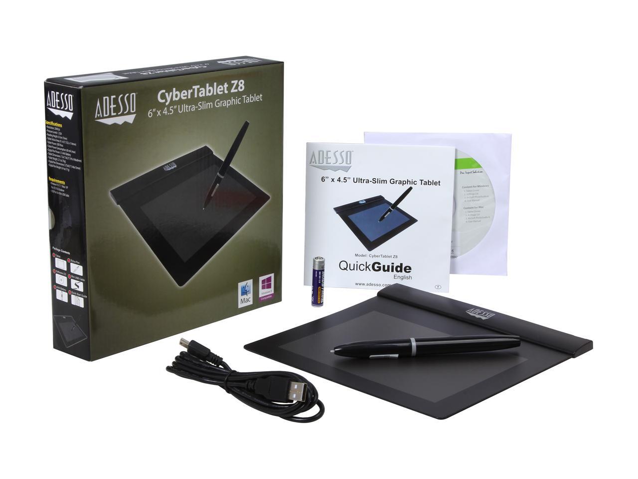 ADESSO CYBERTABLETZ8 6" x 4.5" Active Area USB Ultra-Slim Graphic Tablet