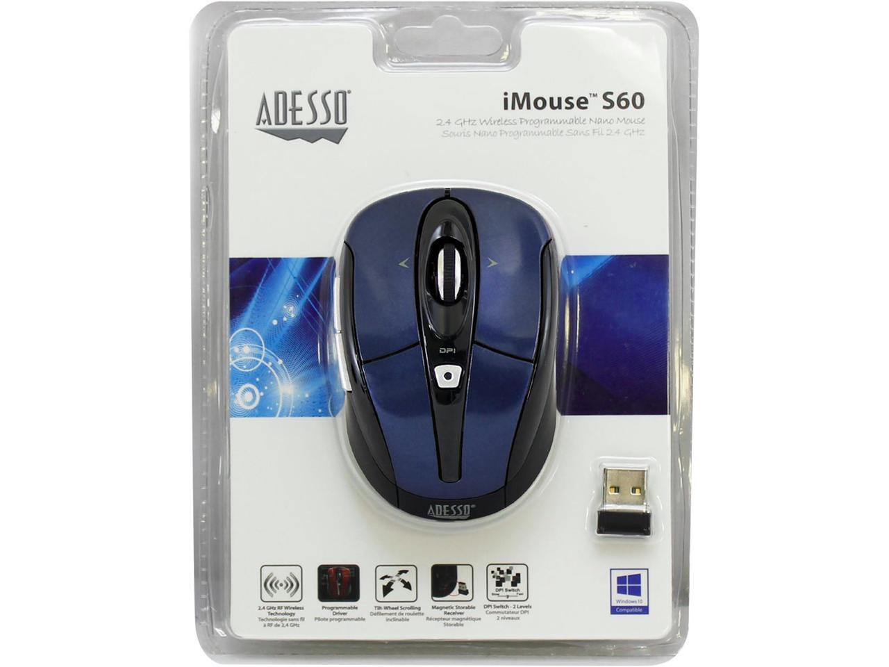 ADESSO iMouse S60L Blue 6 Buttons Tilt Wheel USB RF Wireless Optical Mouse