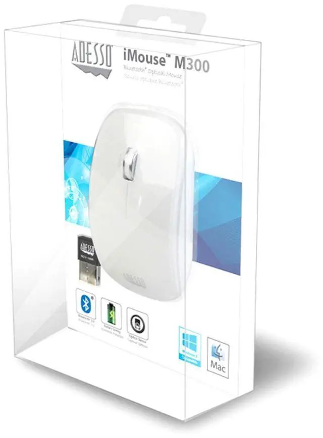 Make an impression with the Adesso iMouse M300, an input device built with a modern look and has a reliable wireless range (that extends up to 30 feet). Along with the low profile "sleek" feel and comfortable design, the M300 is well equipped with an optical infrared sensor, offering better accuracy and sensitivity than any traditional optical mice.